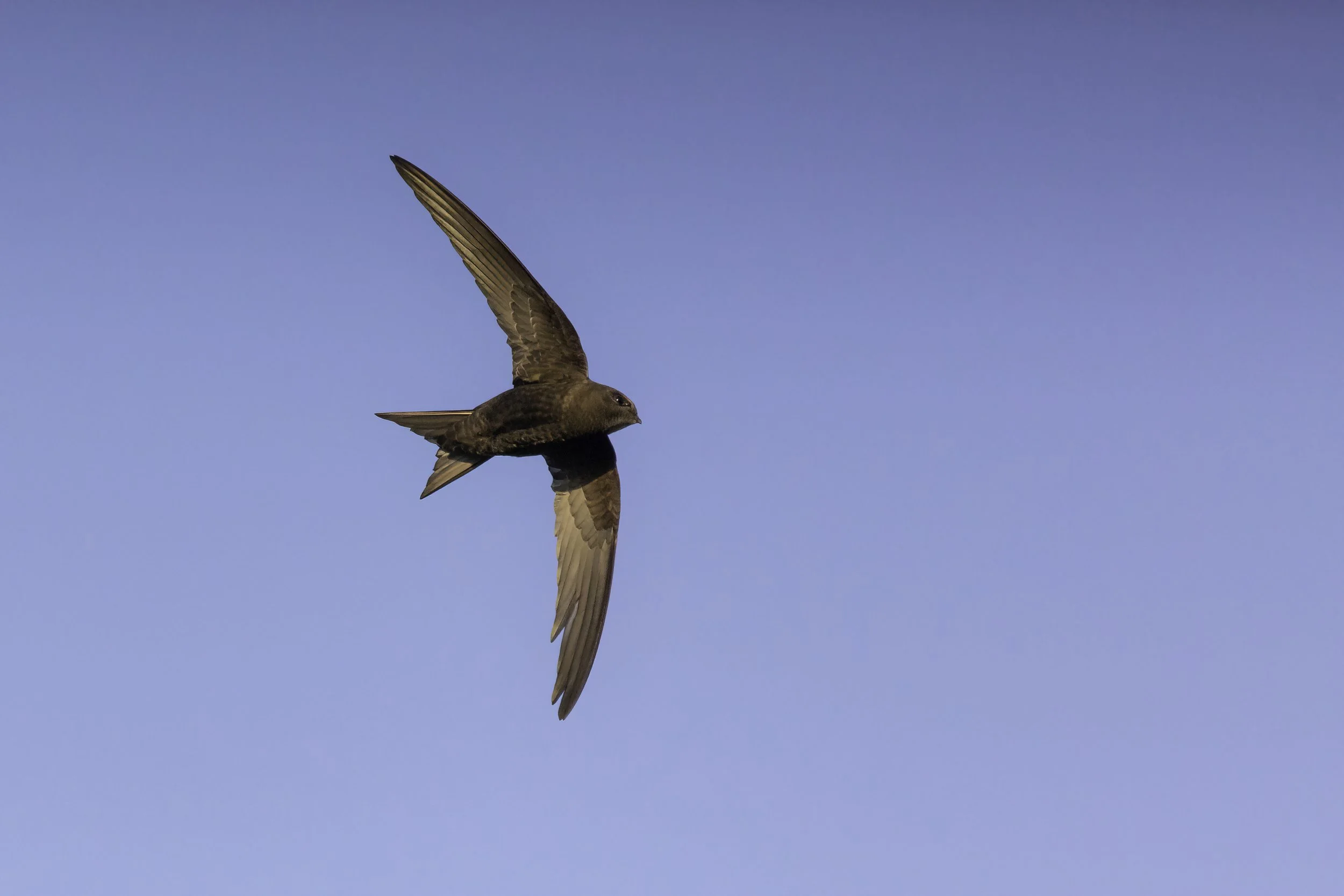 Back to swifts, which fly up from Africa each year, arriving in the third or fourth week of April and leaving in late July or early August. Whenever I’m in the mood for running a fool’s errand in the spring, I stand outside with my cheapish consumer lens and try to get the autofocus to lock on to small dark birds whizzing around at high speed. Fortunately, pure luck and the law of averages mean it would probably be harder to mess up every single picture than to occasionally come up with something vaguely acceptable: